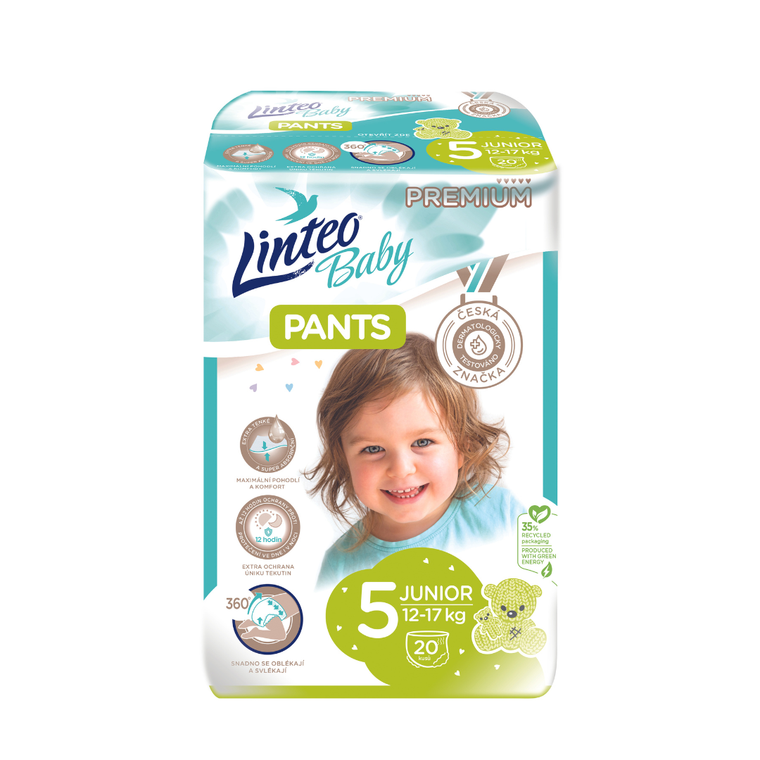 Výrobky ryze české značky Linteo usnadňují a zpříjemňují život všem členům rodiny a jsou její nedílnou součástí takřka 30 let. Společnost po celou dobu své existence neustále pracuje na tom, aby její produkty zákazníkům z hlediska osobní hygieny a kvality nabízely to nejlepší, proto veškeré výrobní procesy procházejí přísnými kontrolami a dermatologickými testy. Bezpečnost a důvěra je tu naprostou prioritou! Týká se to i našich hypoalergenních testovaných plenkových kalhotek velikosti 5, dostupných hned ve třech velikostech dle váhy dítěte, se kterými je přebalování zábavná rychlovka.