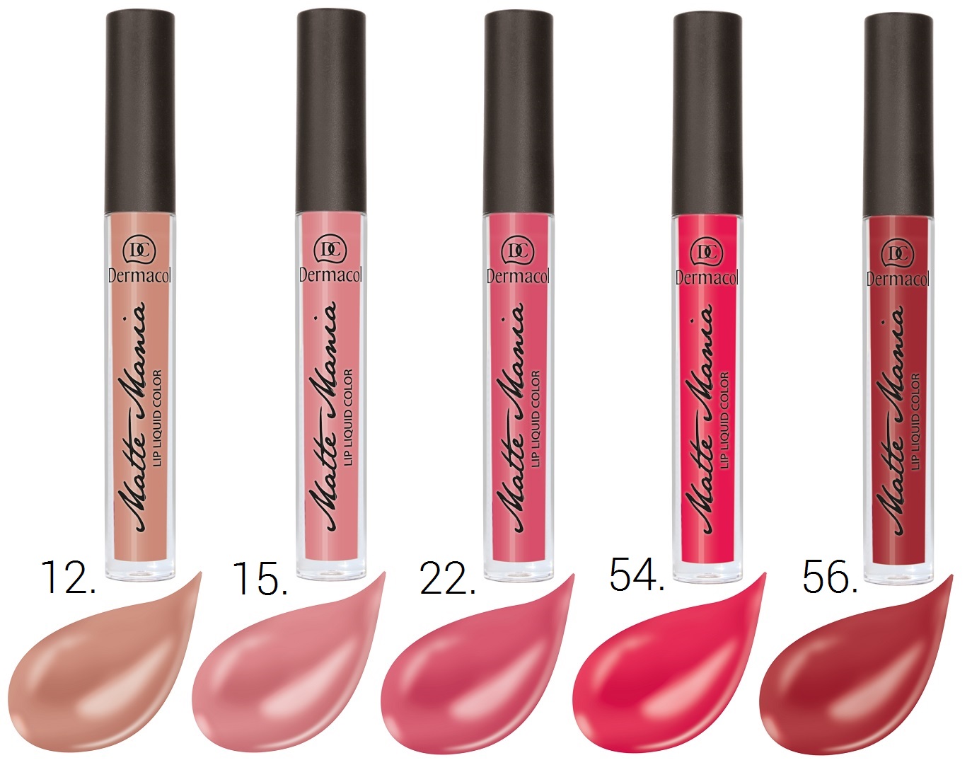 V rámci testování mohlo 100 vybraných testerek vyzkoušet některý z 5 odstínů rtěnky Dermacol Matte Mania, a to z odstínů č. 12, 15, 22, 54 nebo 56.
