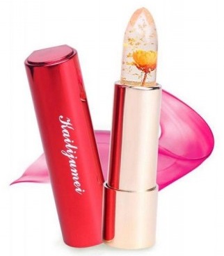 Nechte se okouzlit průhledným gelem rtěnky Kailijumei, který skrývá pravou květinu, zlaté vločky a nádherně růžovou barvu, která se projeví až po nanesení na rty.